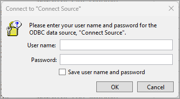 Enter your user credentials in the dialog. The User name is your User Id in Connect AI, and the Password is the PAT obtained in the prerequisites.