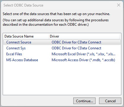Select File > Import Records > ODBC Data Source. A Select ODBC Data Source dialog appears.
