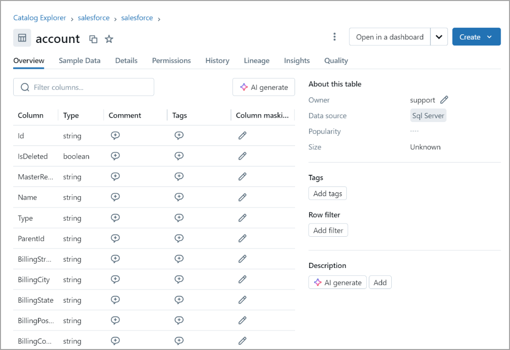 You can also return to Catalog in the navigation pane and find the catalog you just added. Expand the catalog to view the objects in the catalog.