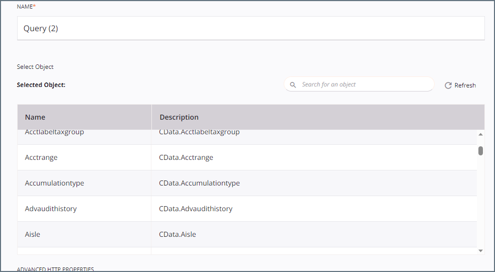 Double-click the query operation to see all the tables and derived views available in your OData endpoint.