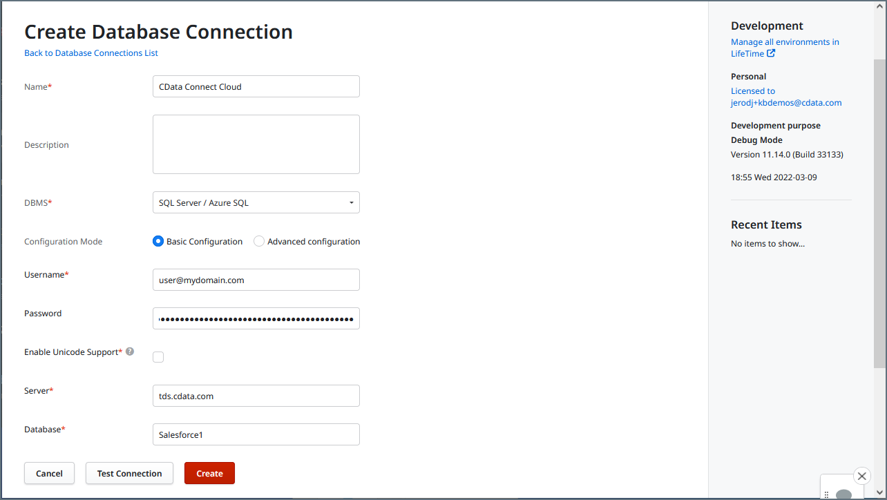 - Username—The Connect AI user email used during preparation, e.g. user@mydomain.com.