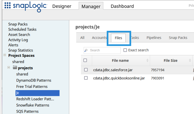 Click the ”+” button in the top right to upload the Connect AI JDBC JAR file. It appears as a file once uploaded.